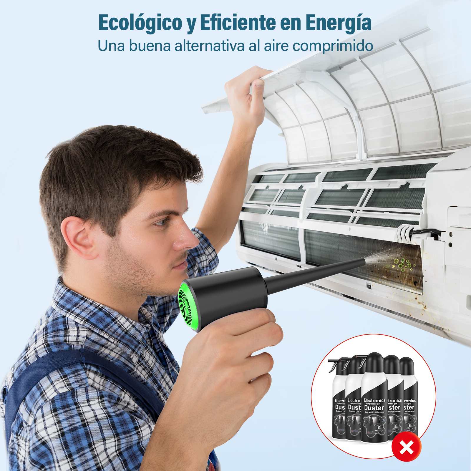 - Limpieza profunda en solo 1 minuto: equipado con un motor sin escobillas mejorado, este soplador de aire elimina sin esfuerzo el polvo y los residuos atrapados en PC, consolas y televisores, superando la potencia de los aerosoles de aire comprimido o los spray aire comprimido.